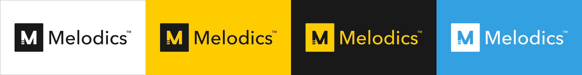 Where possible, use the logo in Melodics Yellow (either on white or Melodics Black) – however where there are contrast or legibility issues (especially at smaller sizes), please use one of these alternatives.