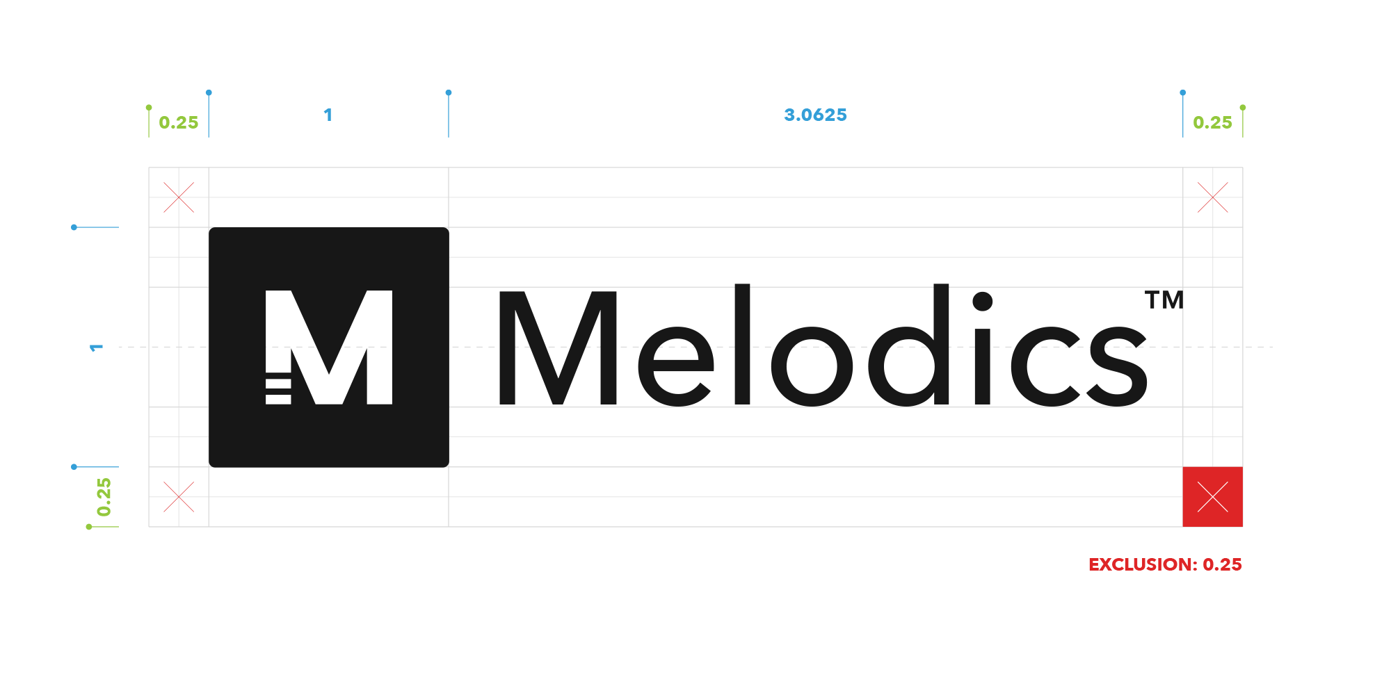 The logo and icon’s exclusion zone is at least 0.25 × the height / width of the icon (marked as 1 in the guideline below). This is the minimum required – where possible, use more.